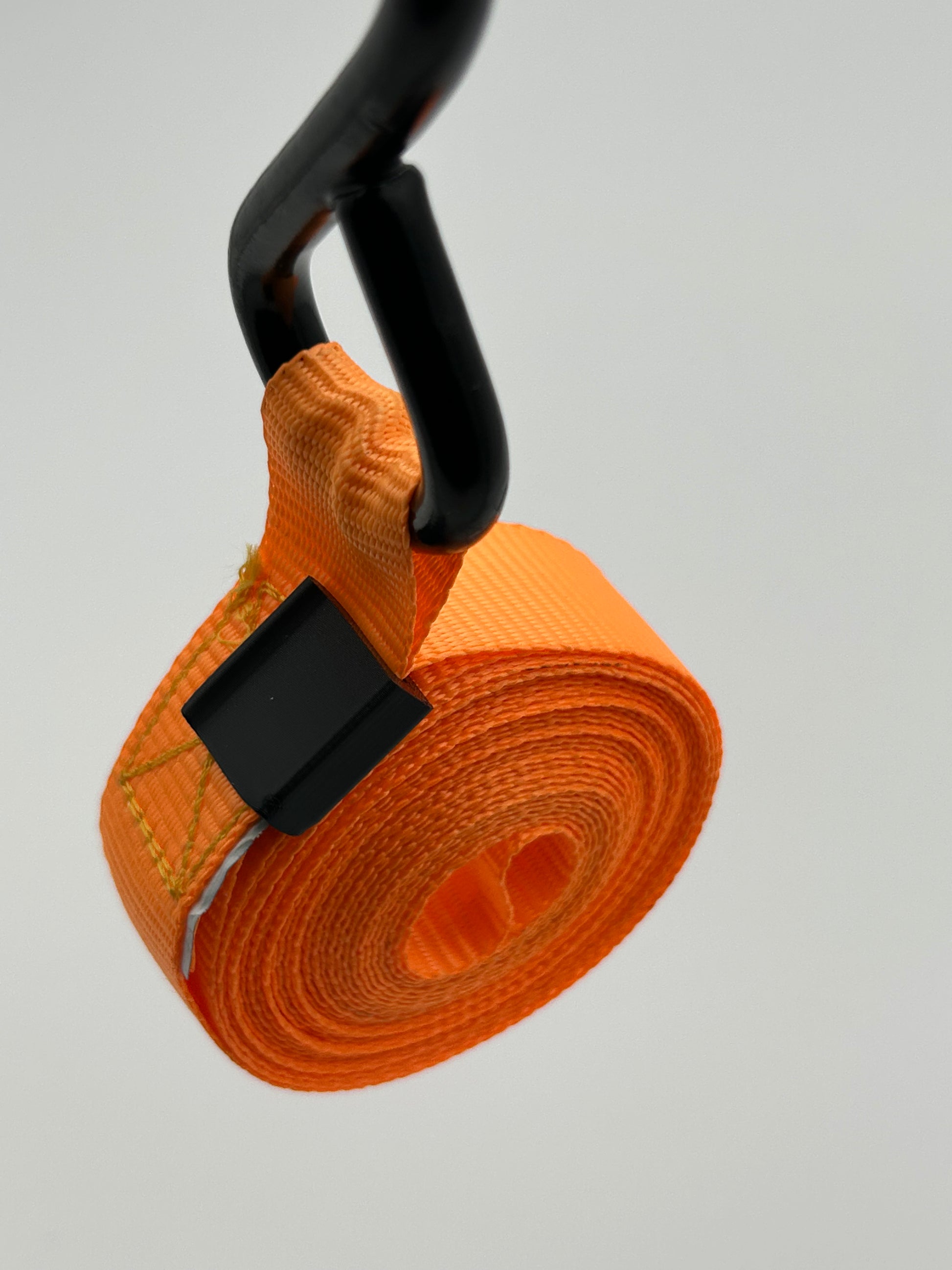 Klips som holder opprullede jekkestropper, spennstropper og lastestropper samlet. Gir bedre orden, mindre slitasje og raskere tilgang neste gang stroppen skal brukes.
