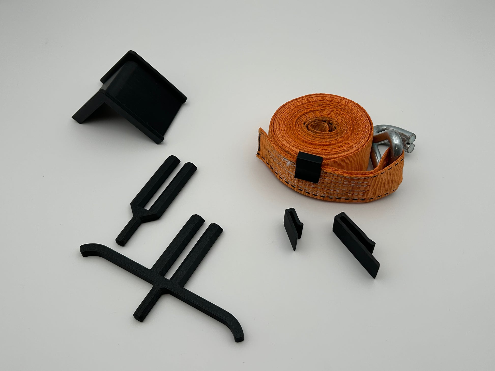 Denne pakken samler det du trenger for enkel håndtering av stropper og sikring av last. Velg ønsket variant, bredde og farge. Alle deler leveres i samme farge.