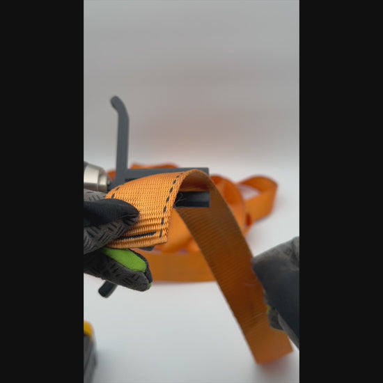 Oppruller for jekkestropp, spennstropp og lastestropp som brukes sammen med drill. Gir rask, jevn og flokefri opprulling av stroppene.
